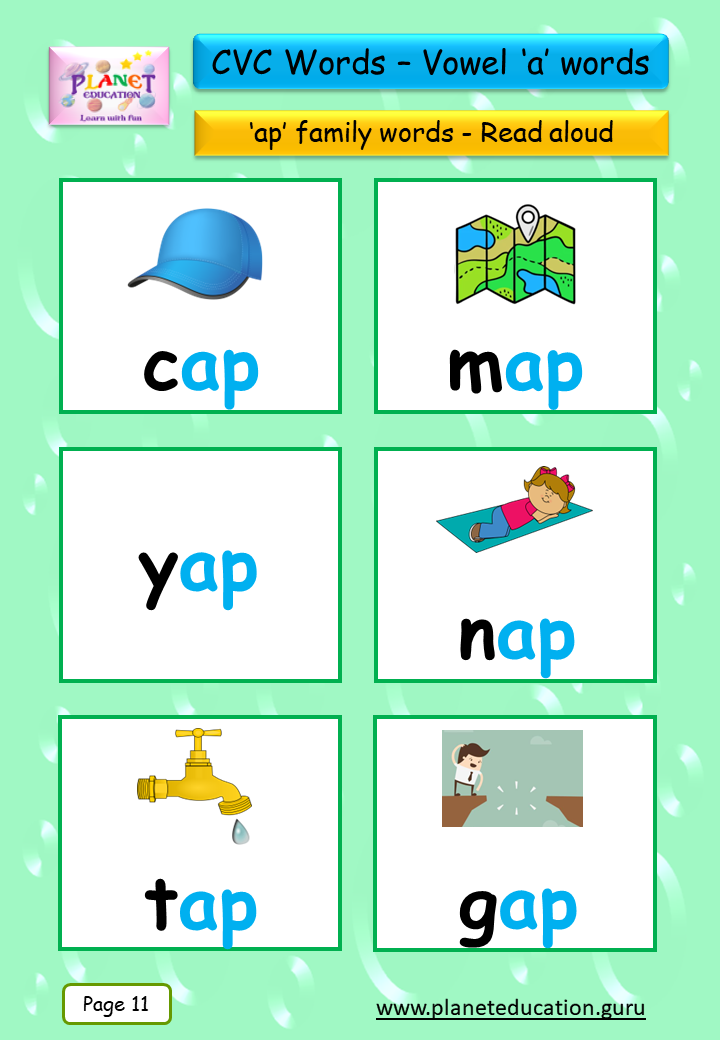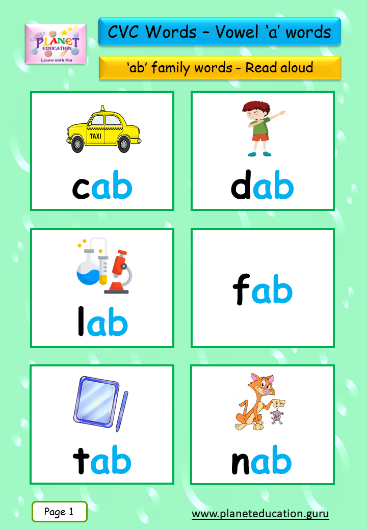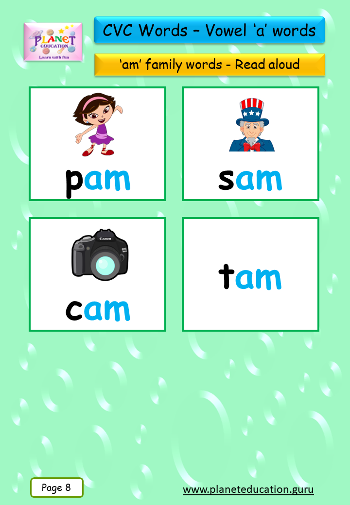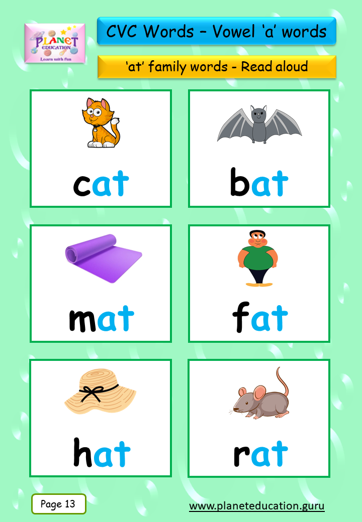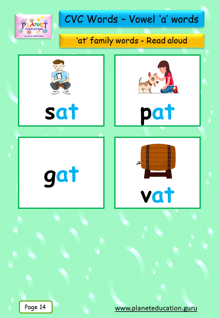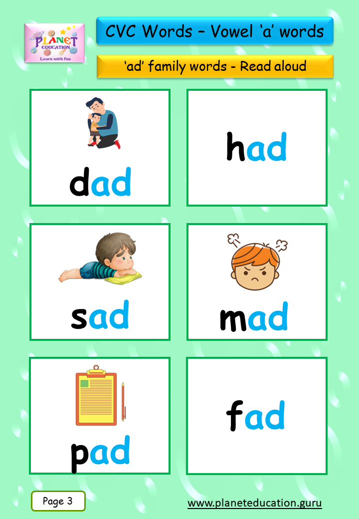 Phonics Flashcard - Learn CVC words - Vowel 'a' words