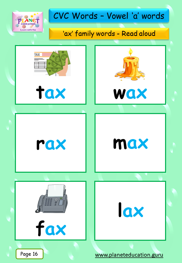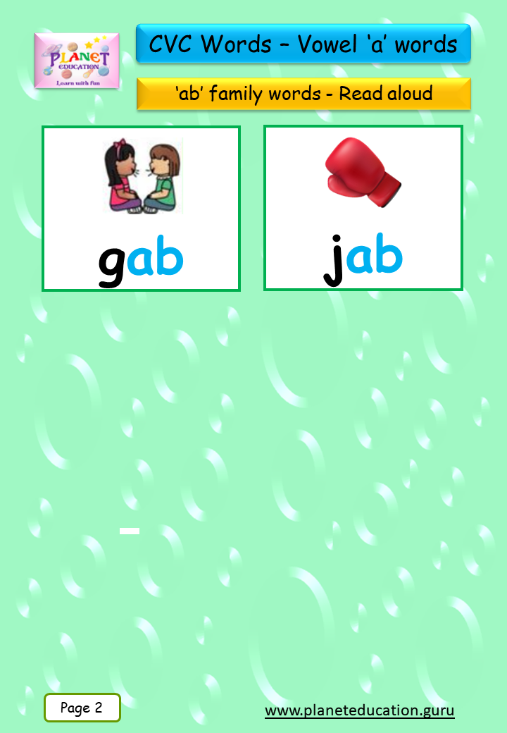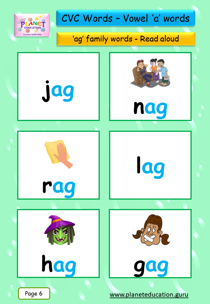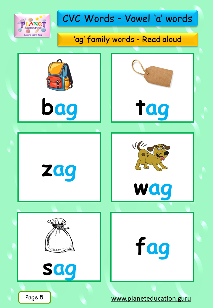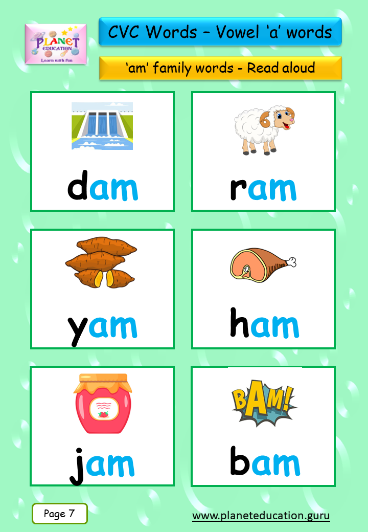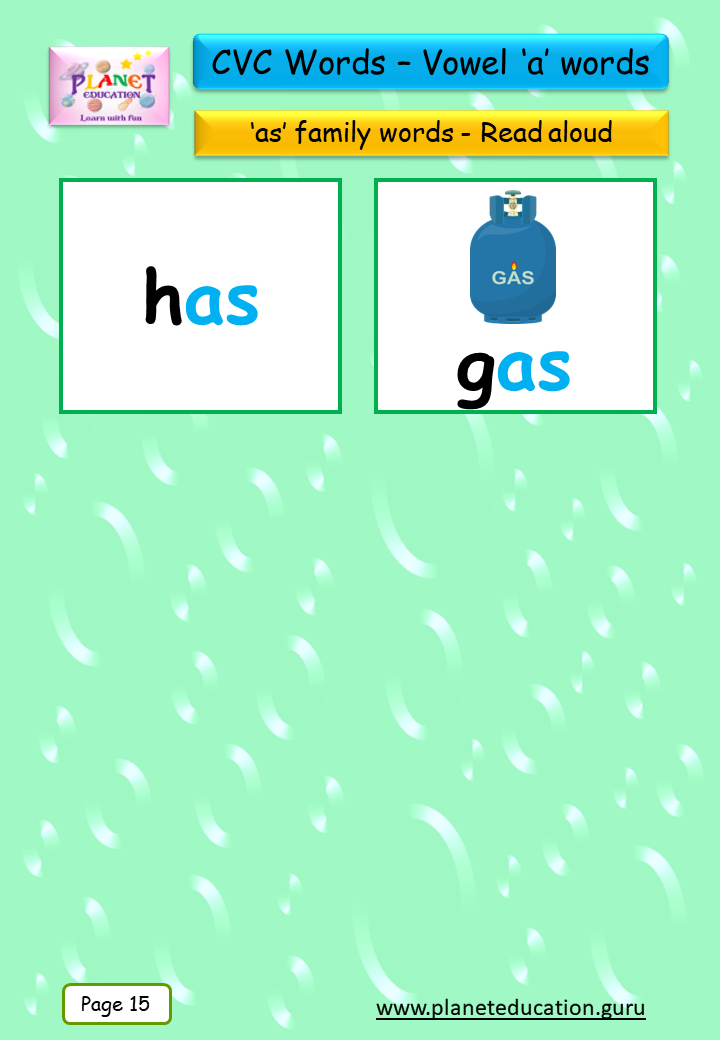 Phonics Flashcard - Learn CVC words - Vowel 'a' words
