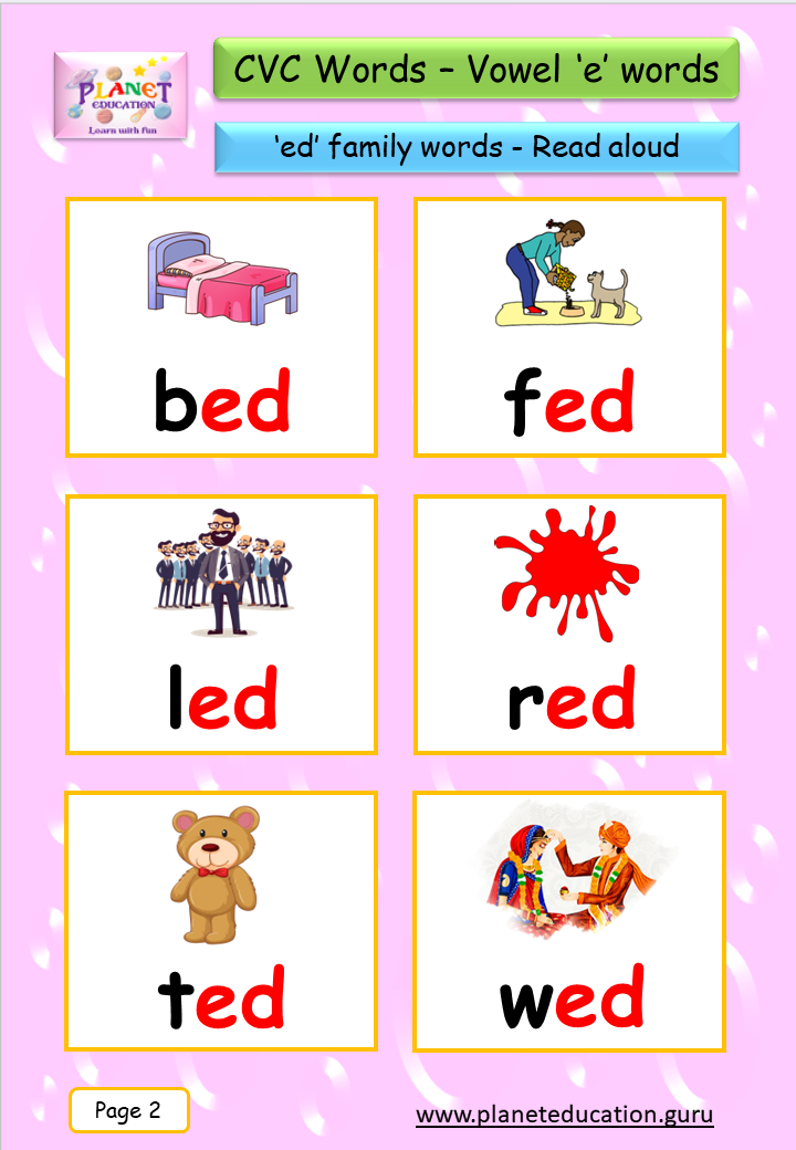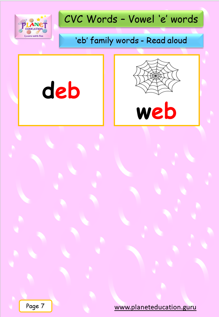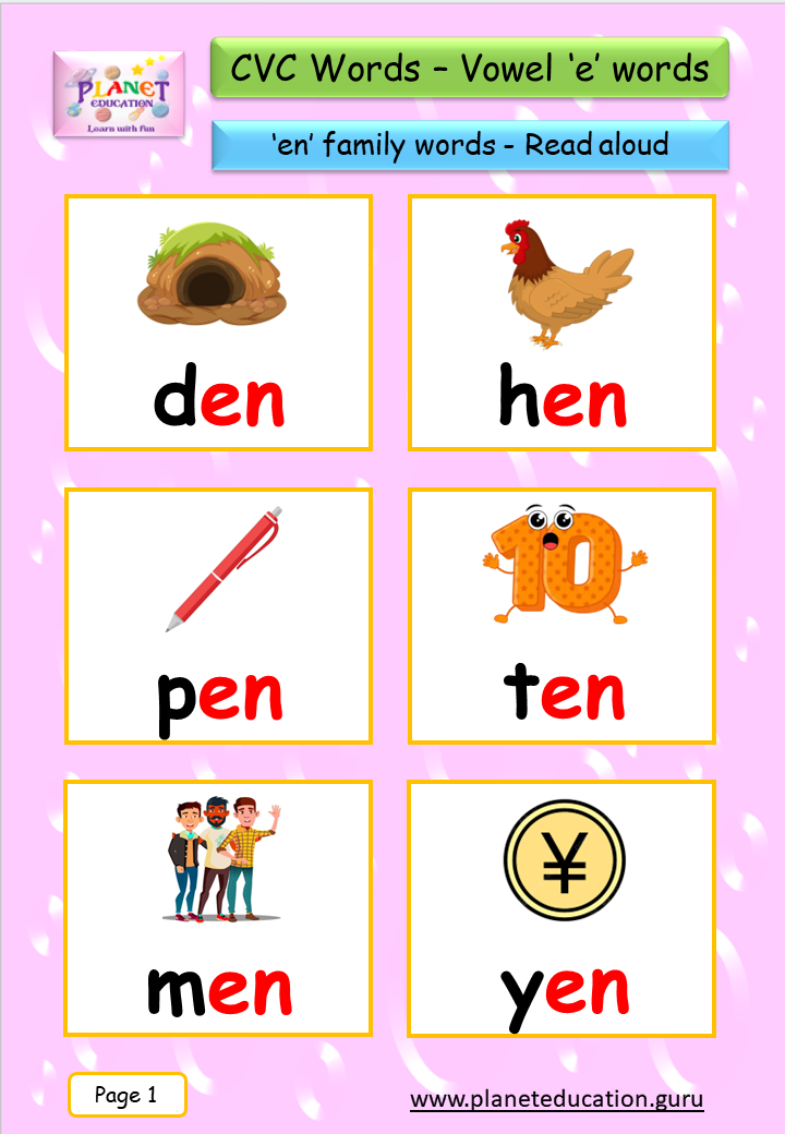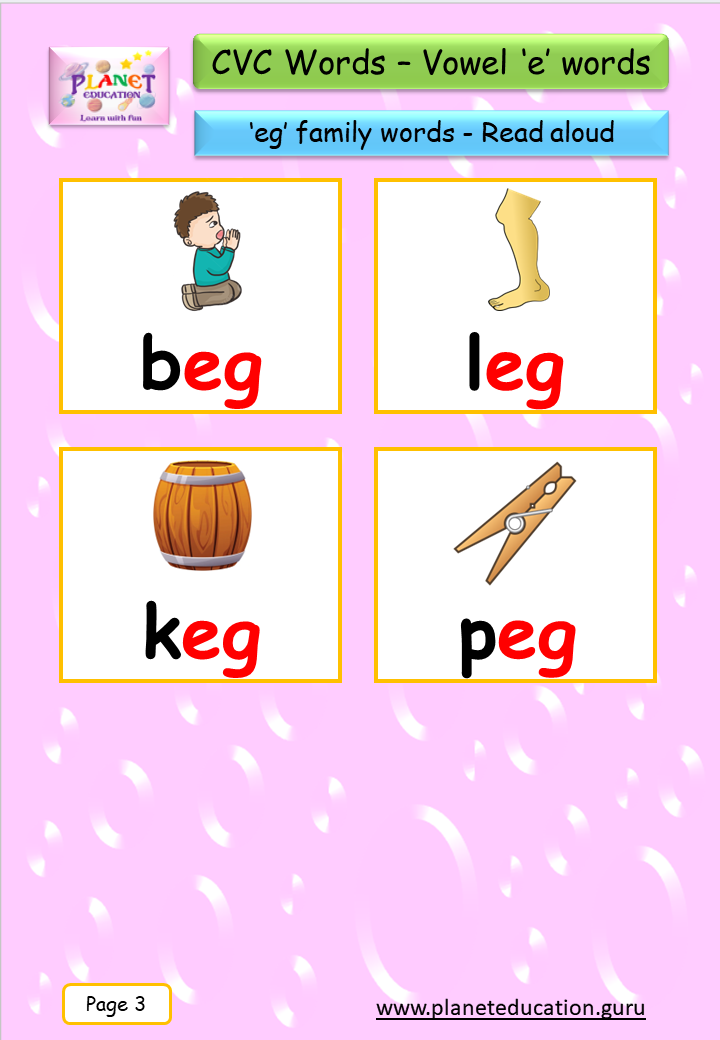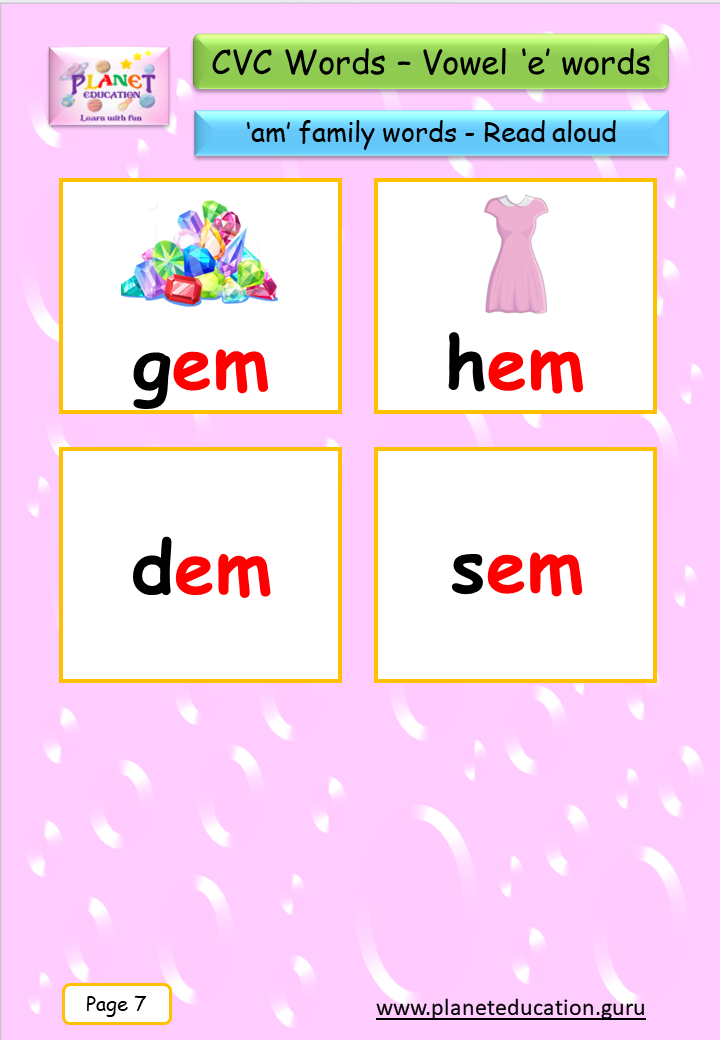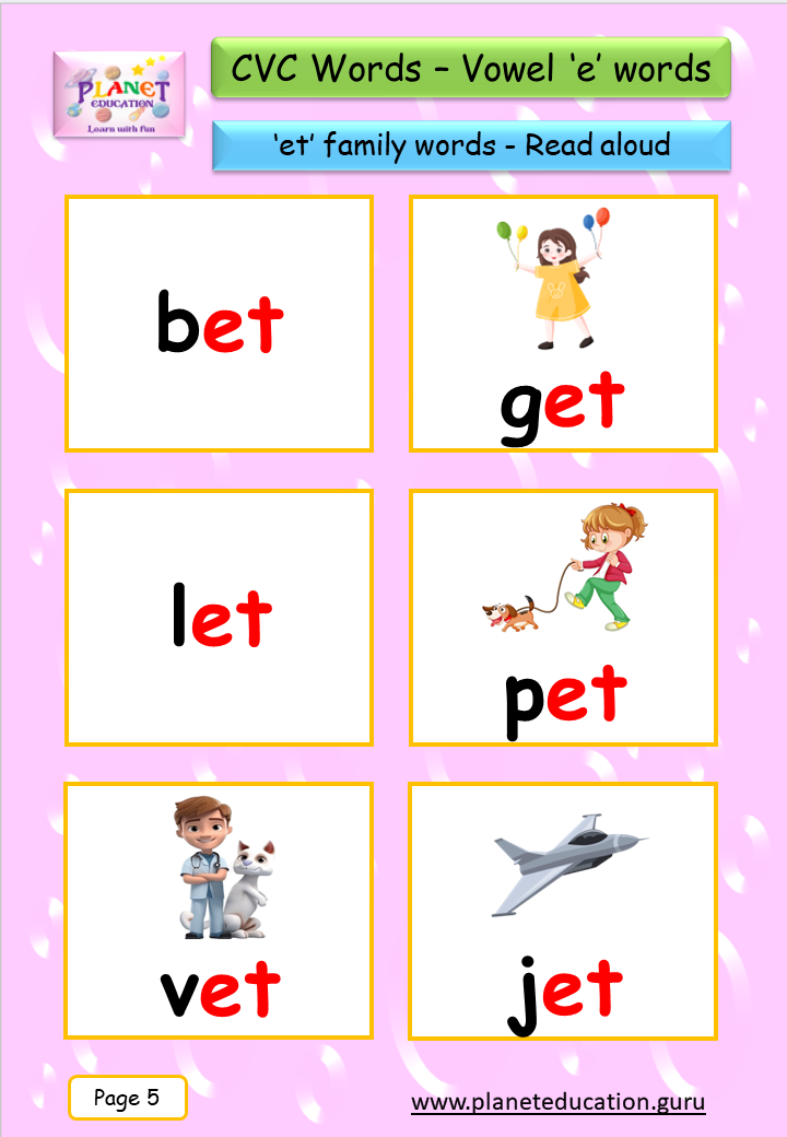 Phonics Flashcard - Learn CVC words - Vowel 'e' words