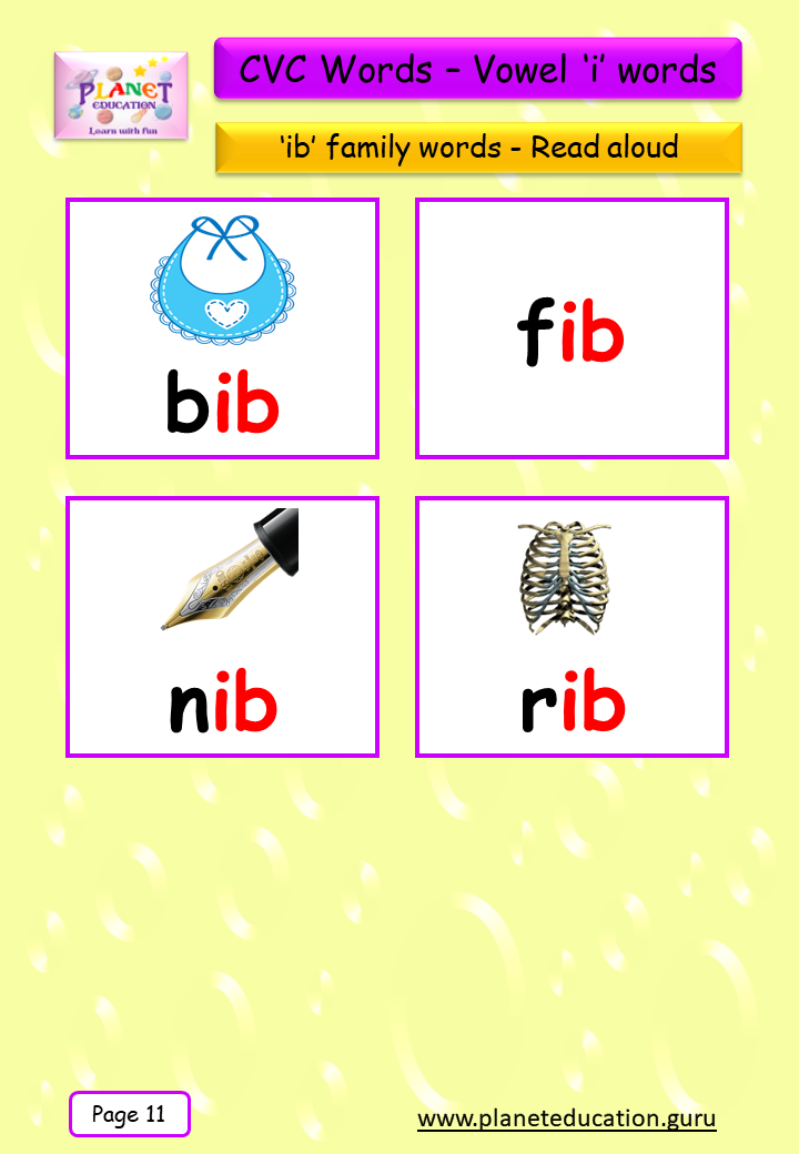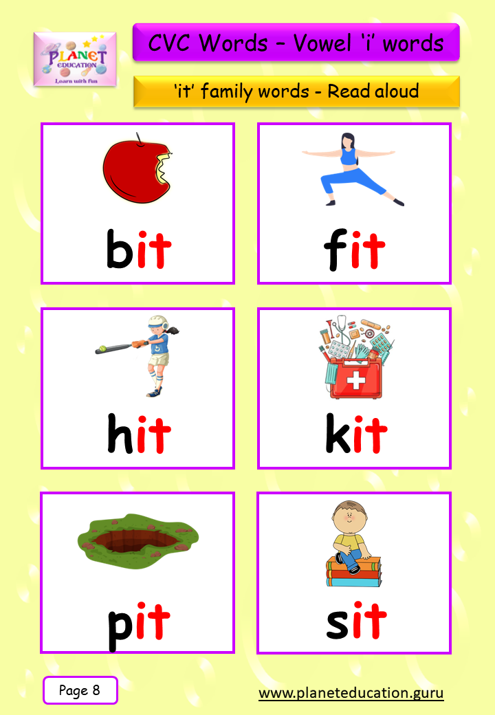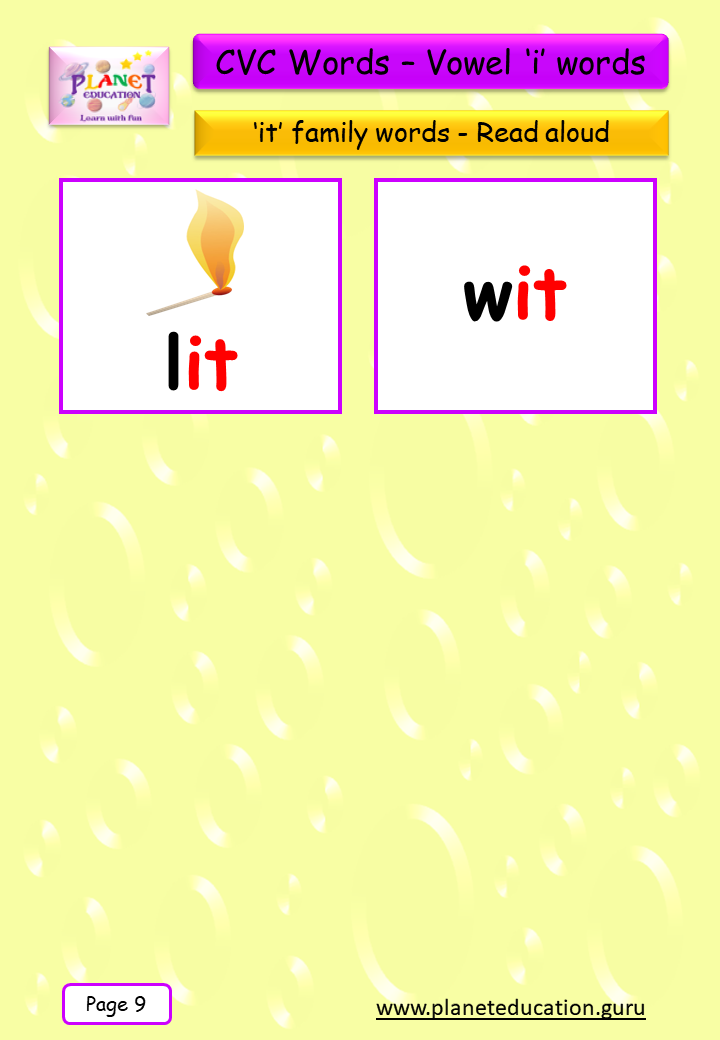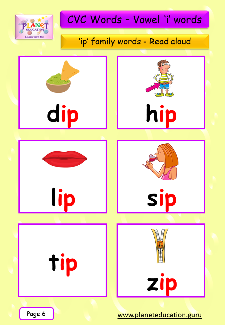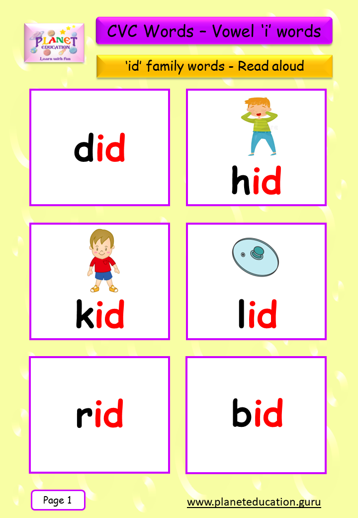 Phonics Flashcard - Learn CVC words - Vowel 'i' words