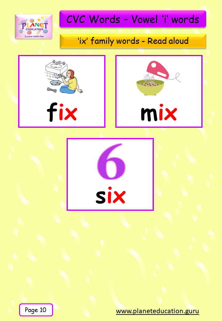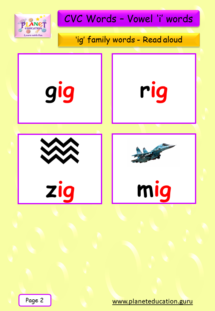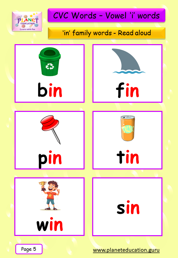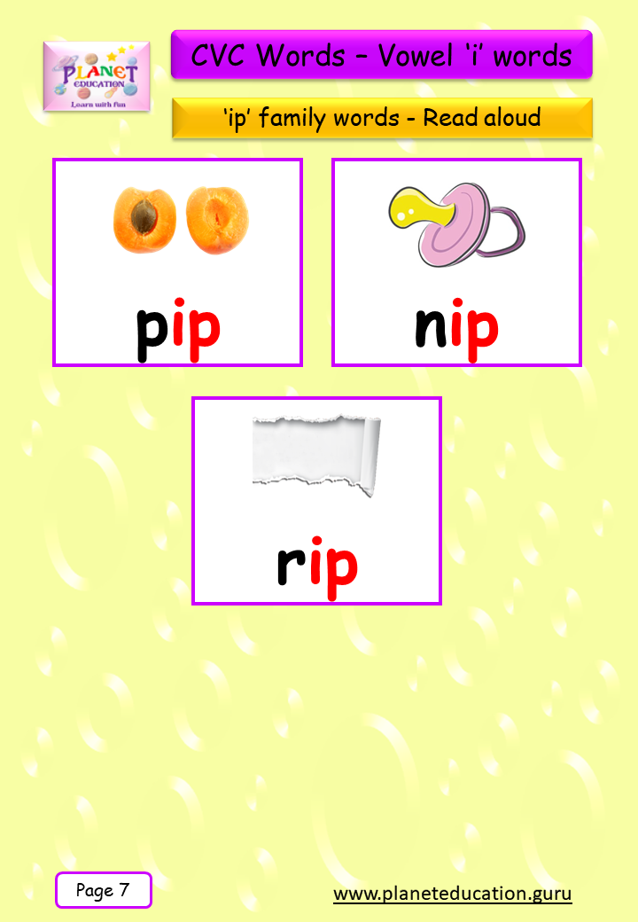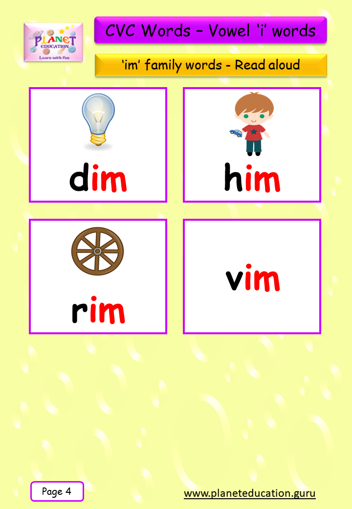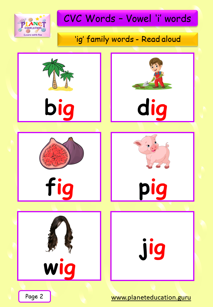 Phonics Flashcard - Learn CVC words - Vowel 'i' words