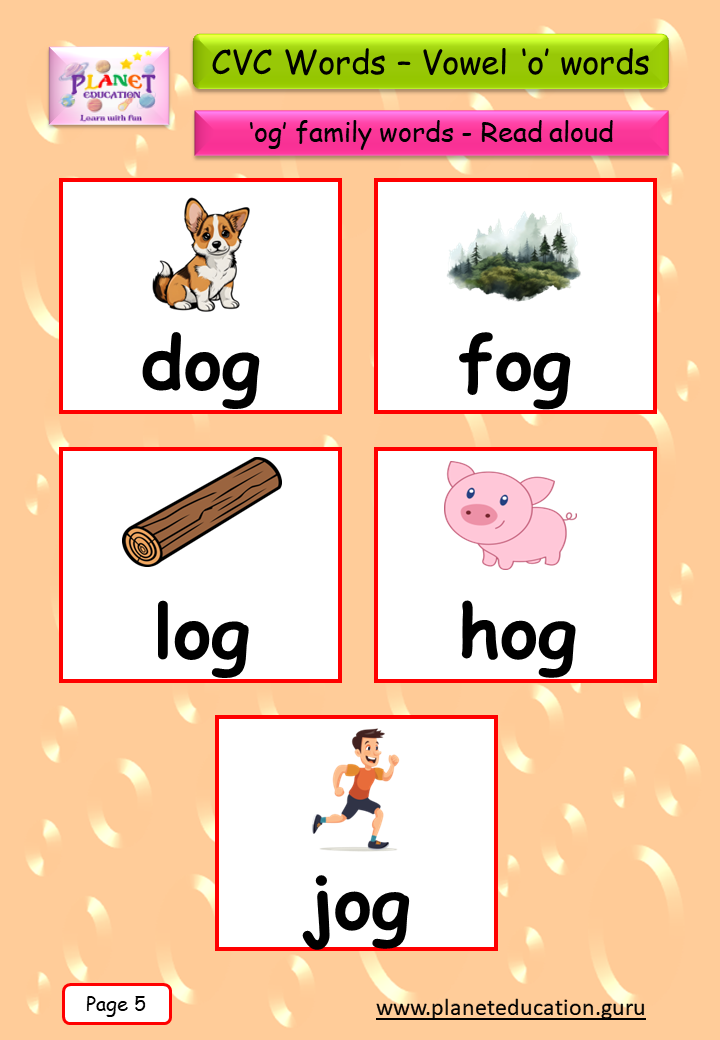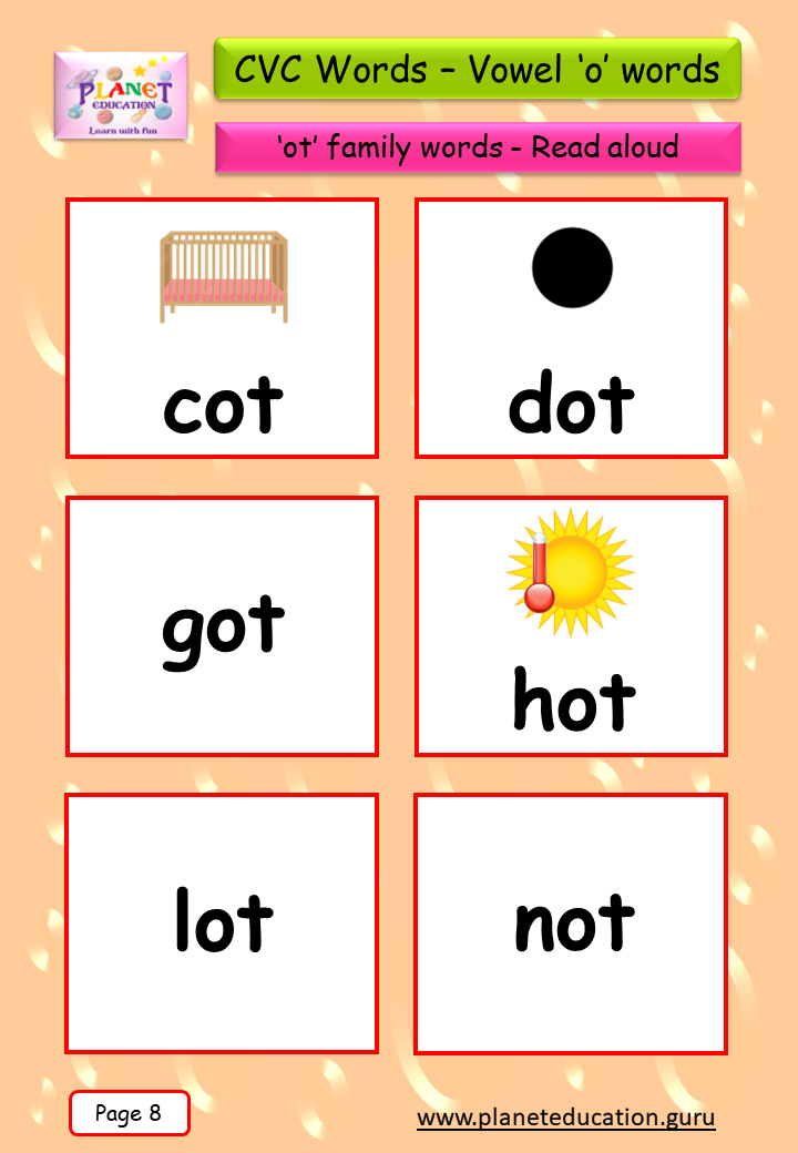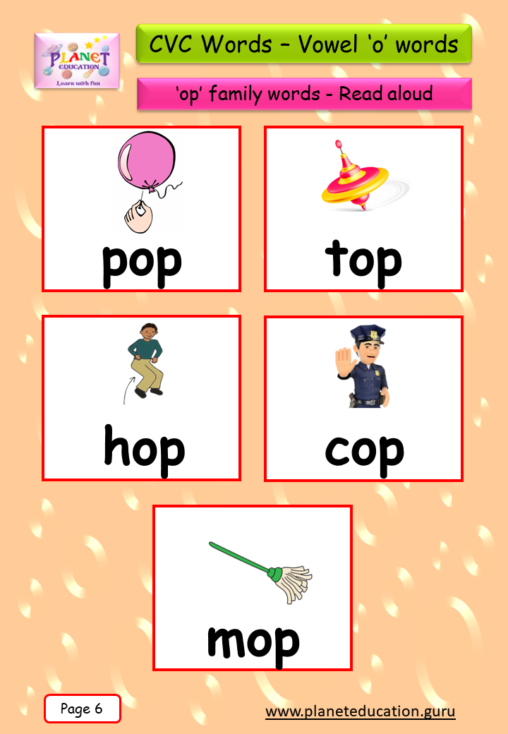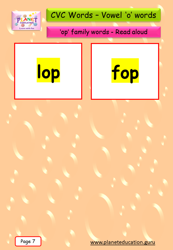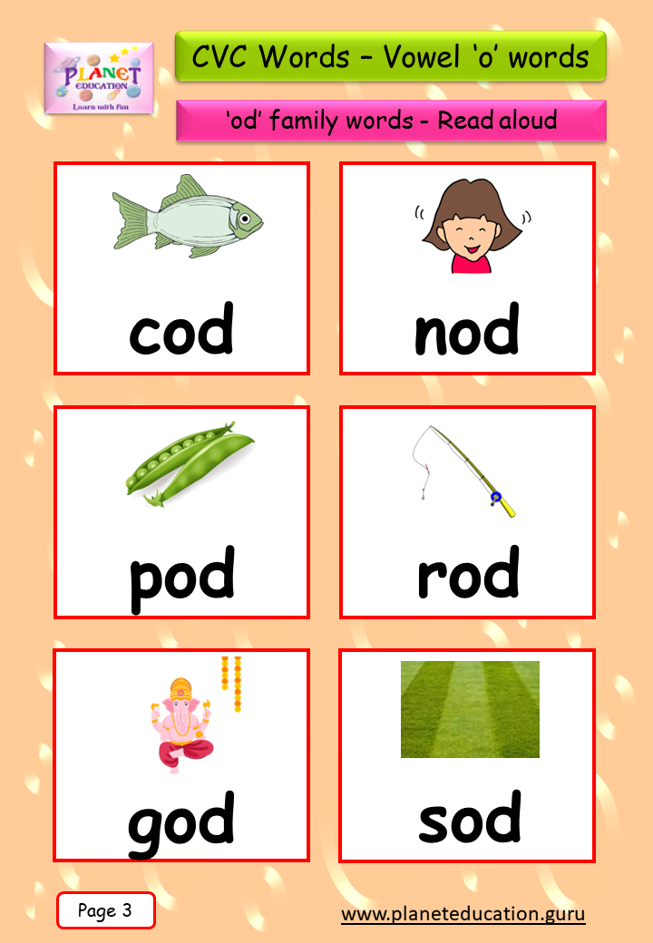 Phonics Flashcard - Learn CVC words - Vowel 'o' words