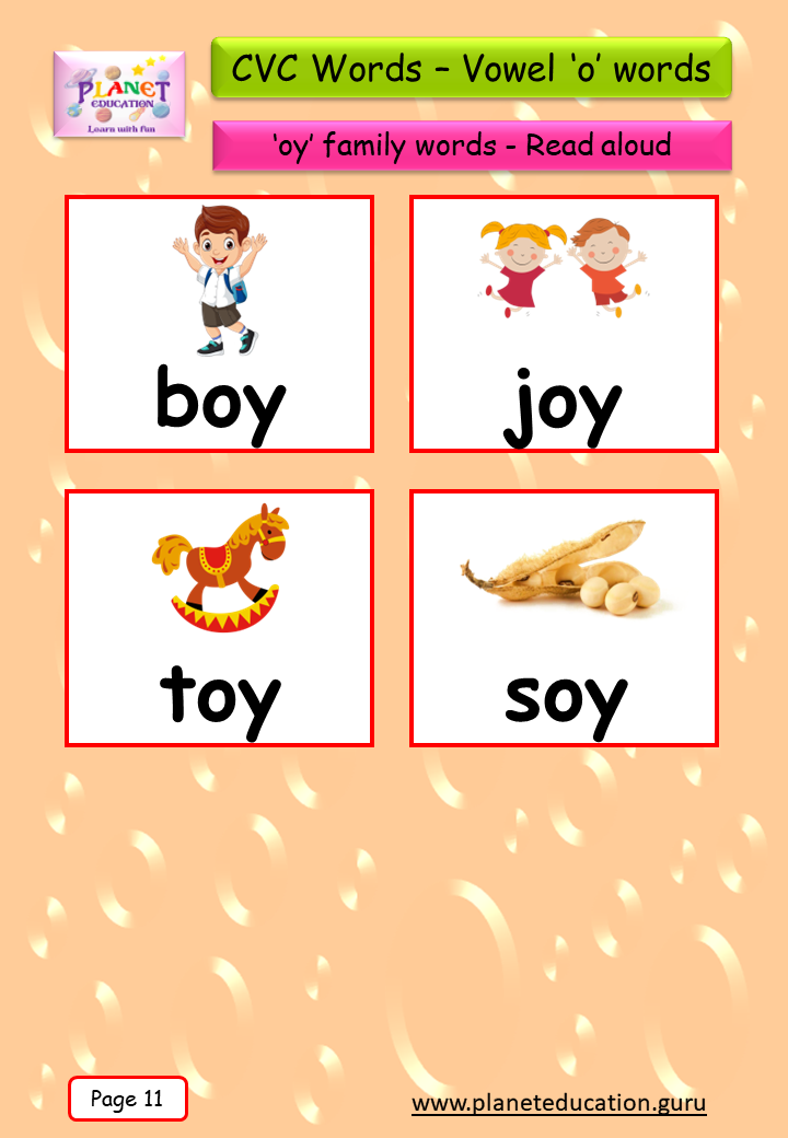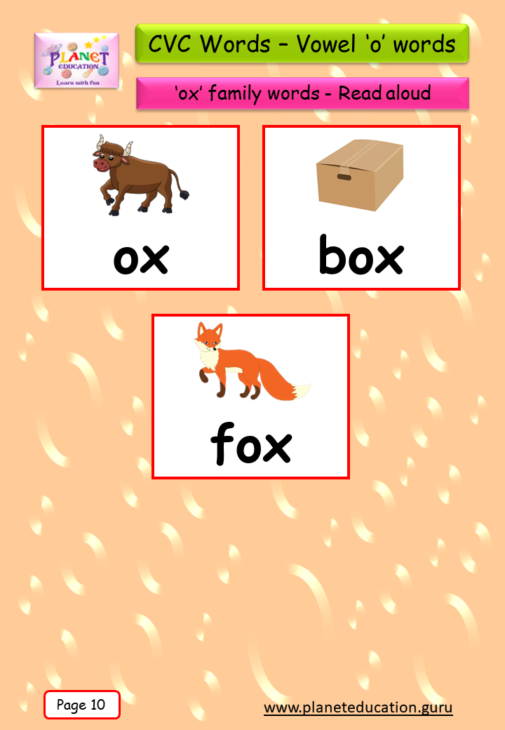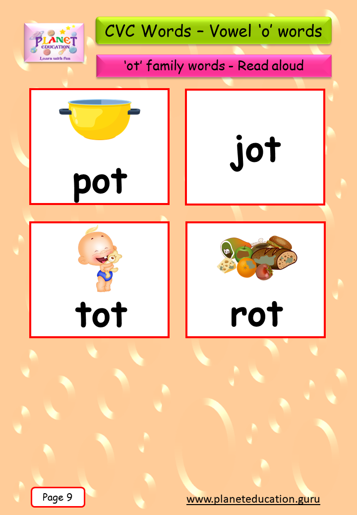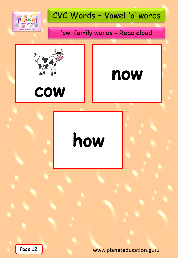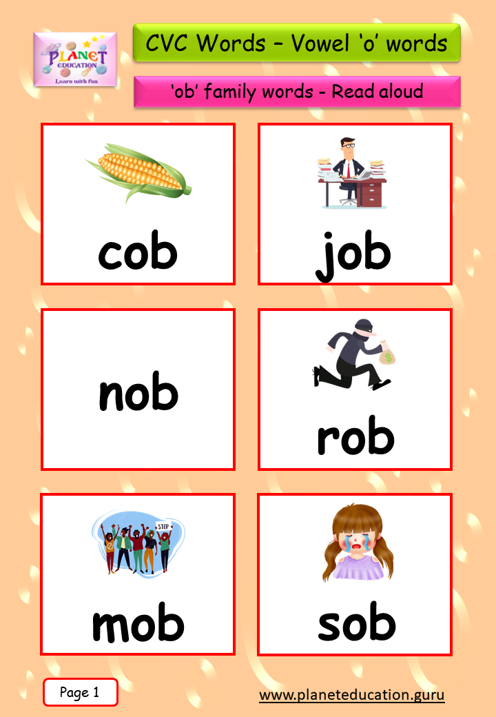 Phonics Flashcard - Learn CVC words - Vowel 'o' words