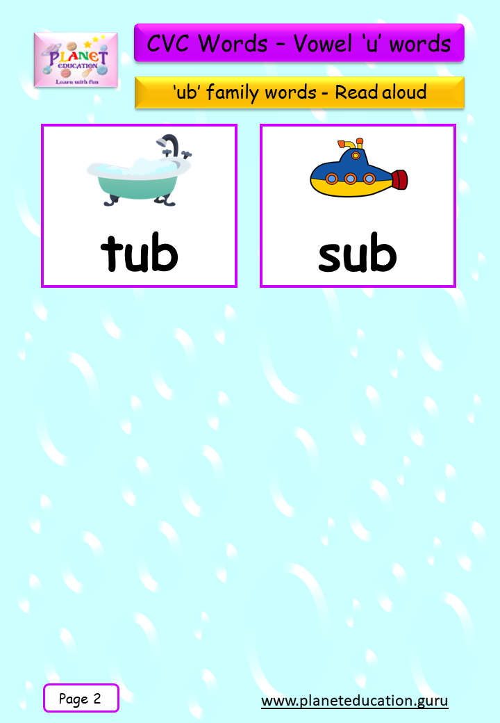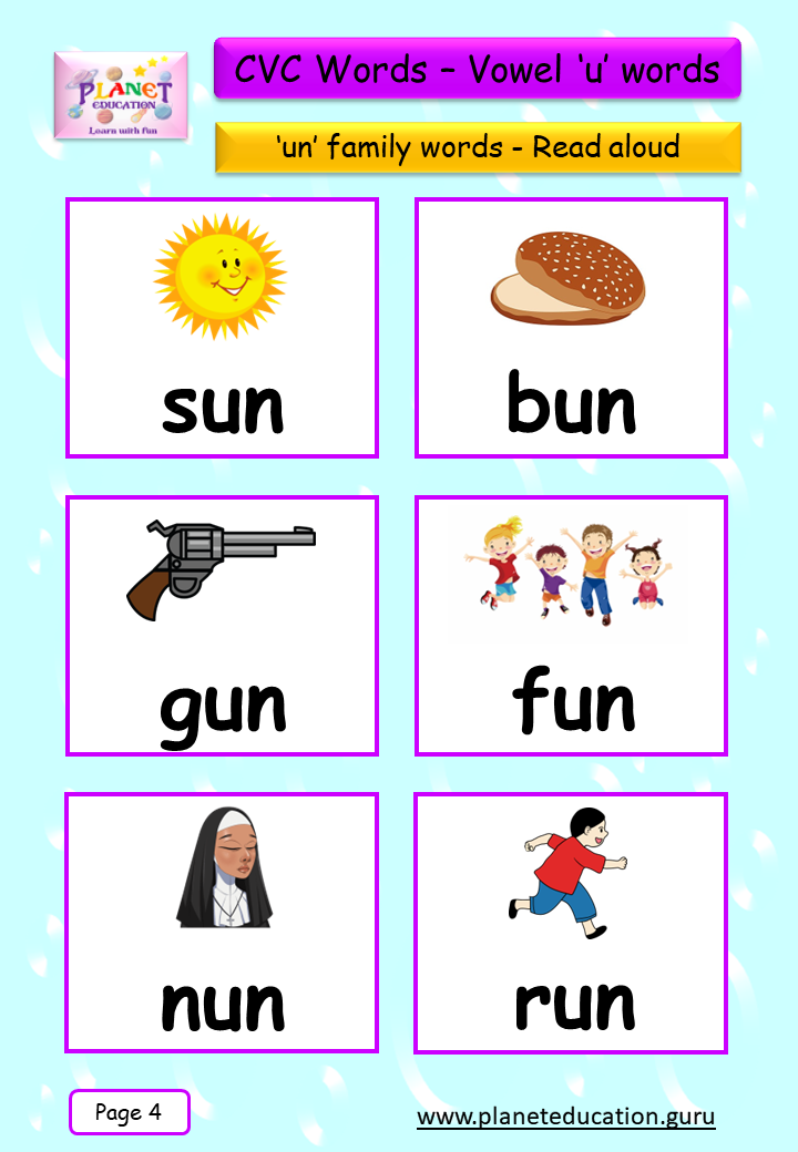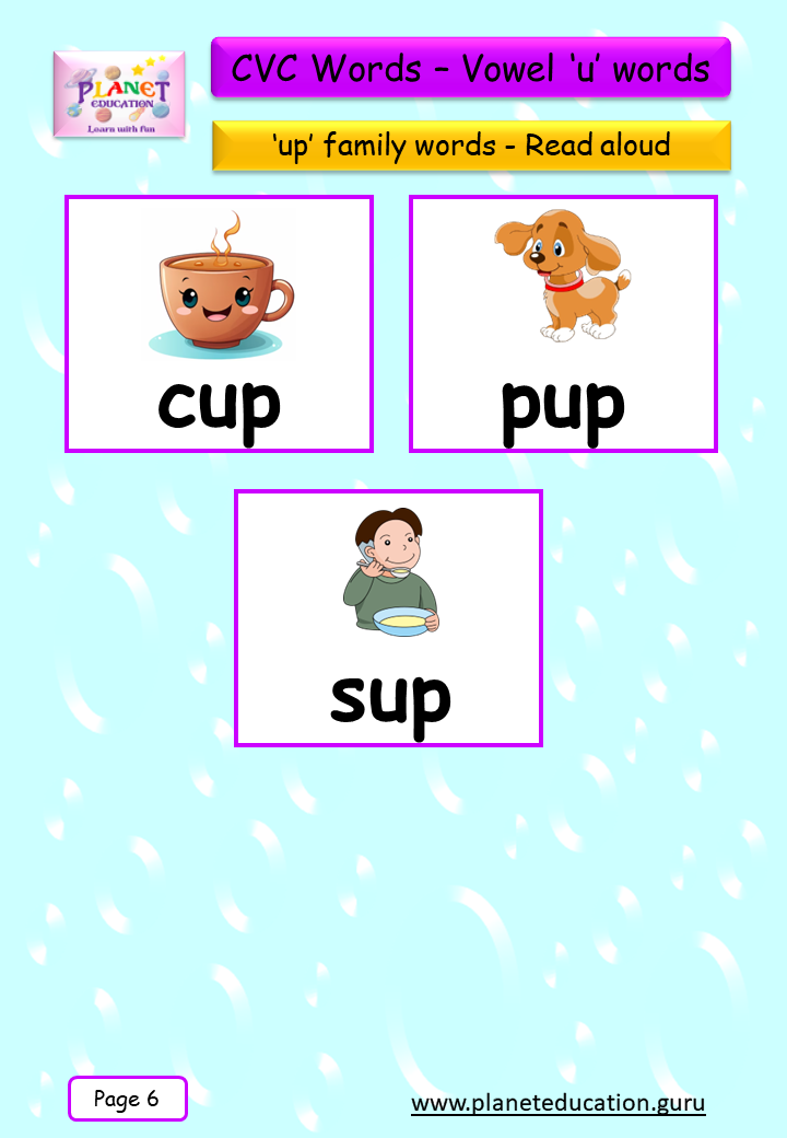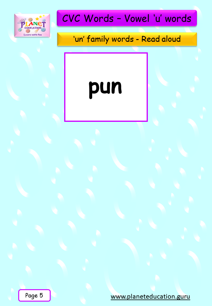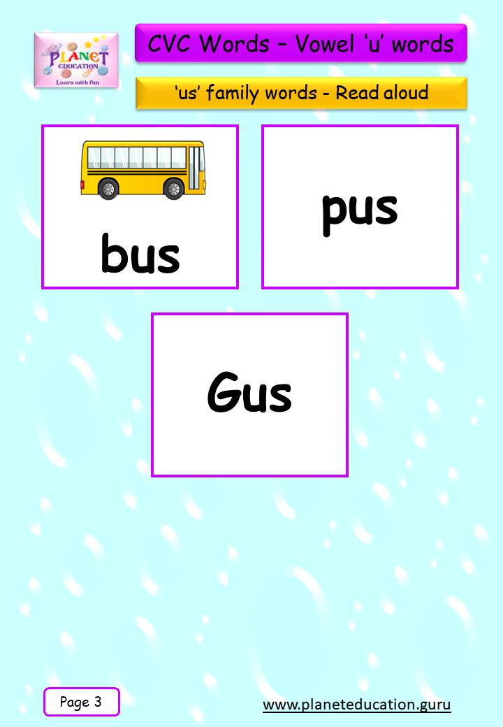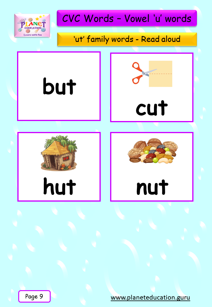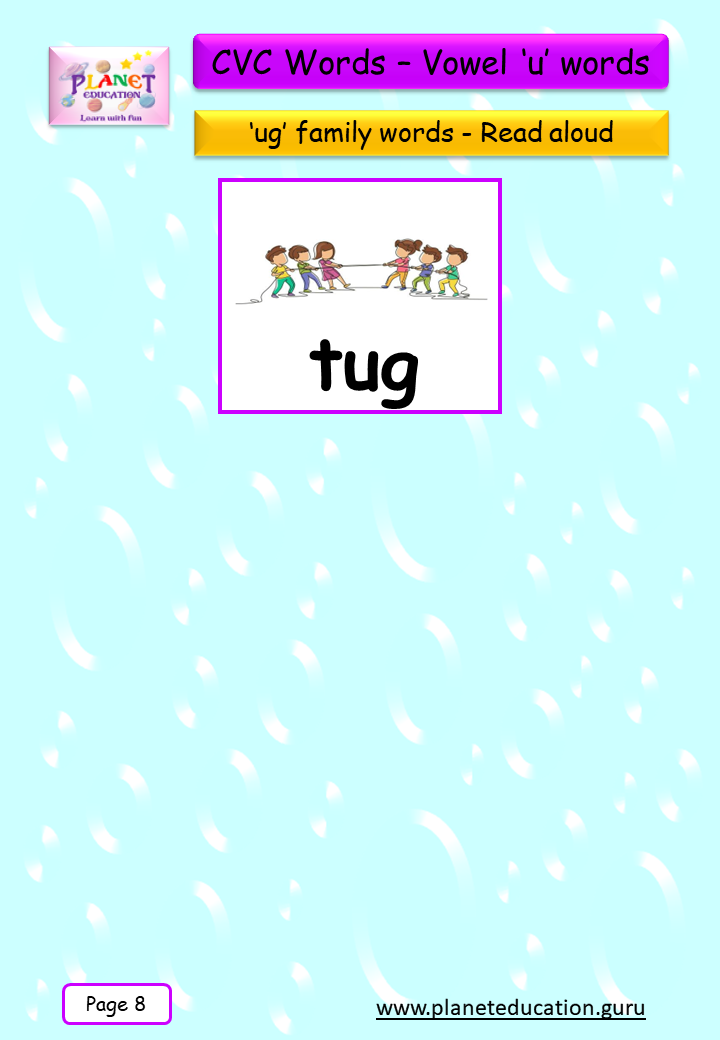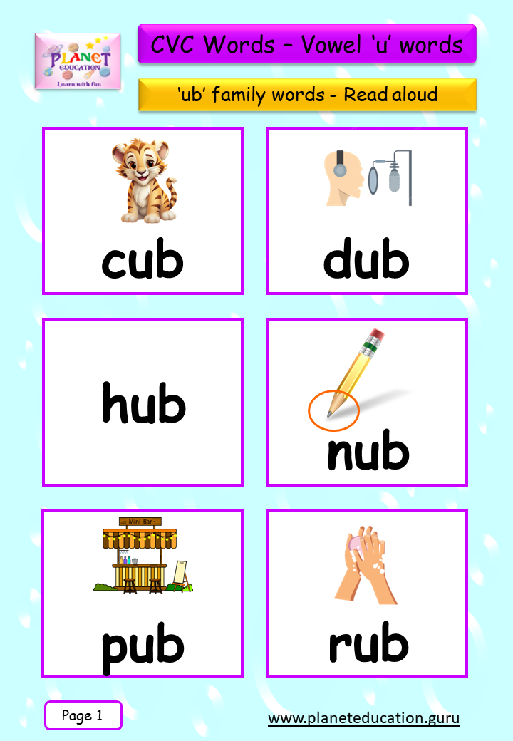 Phonics Flashcard - Learn CVC words - Vowel 'u' words