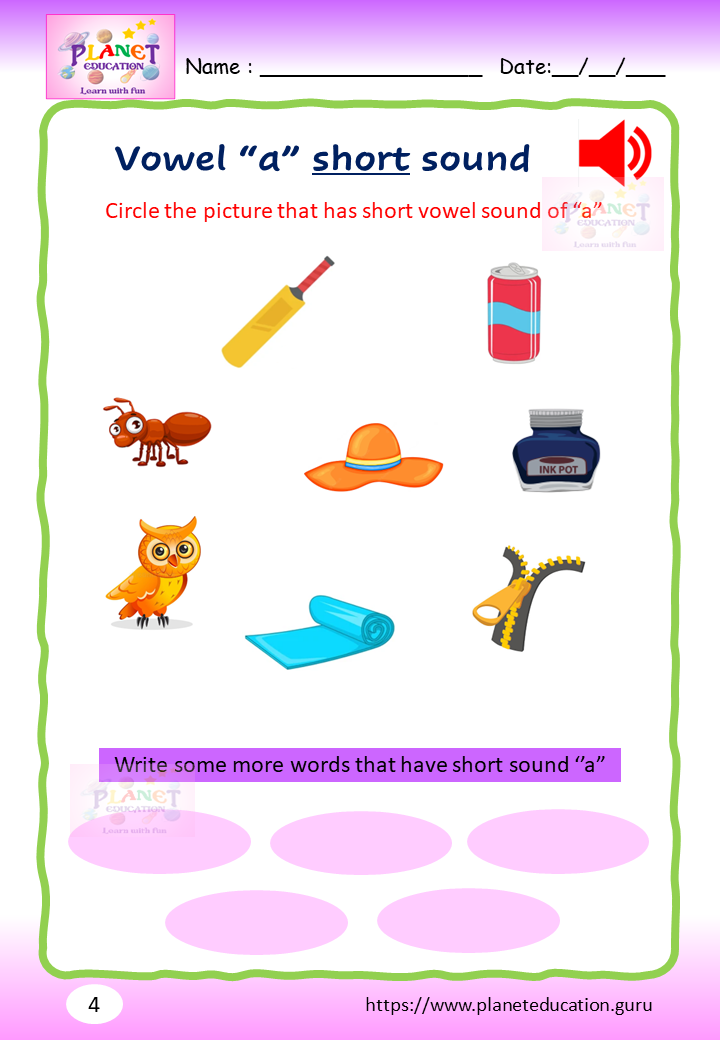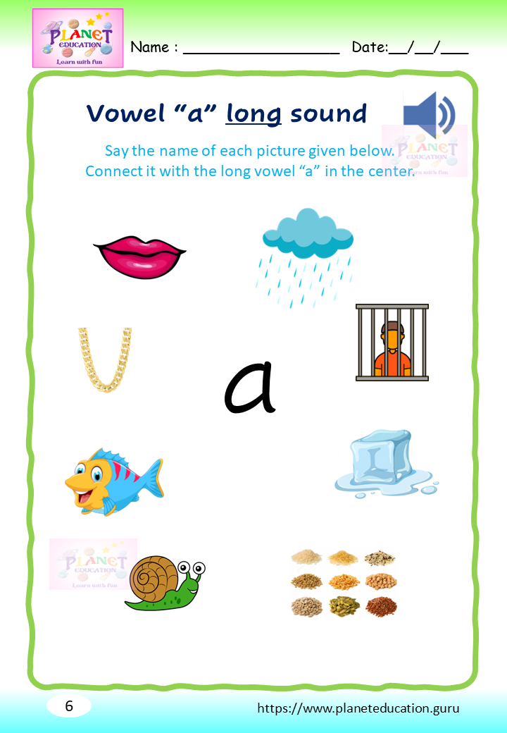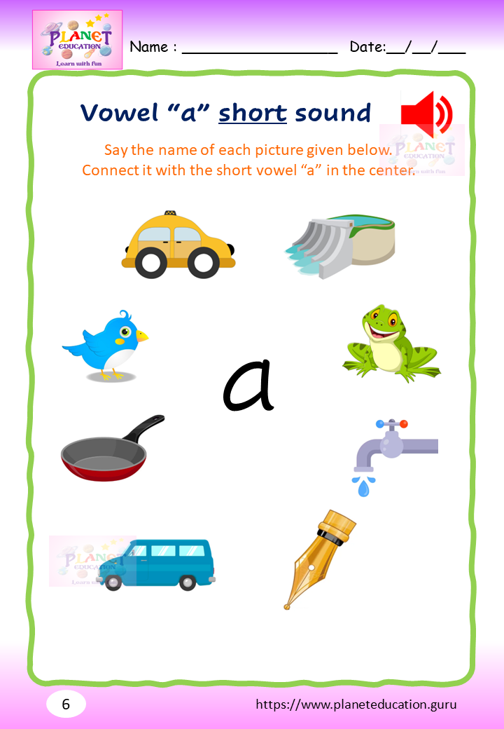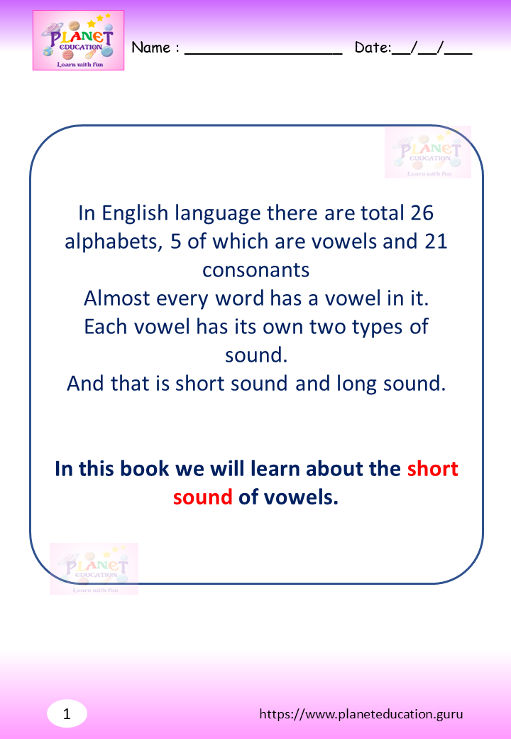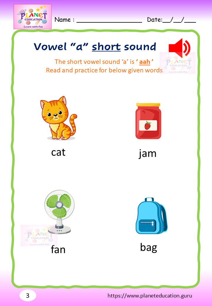 Phonics Worksheet - Learn vowel and its sound - Volume 1
