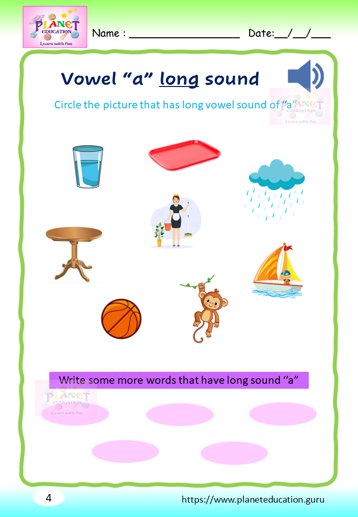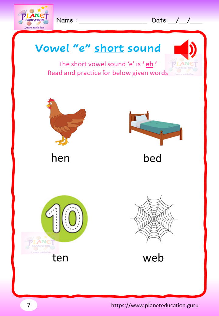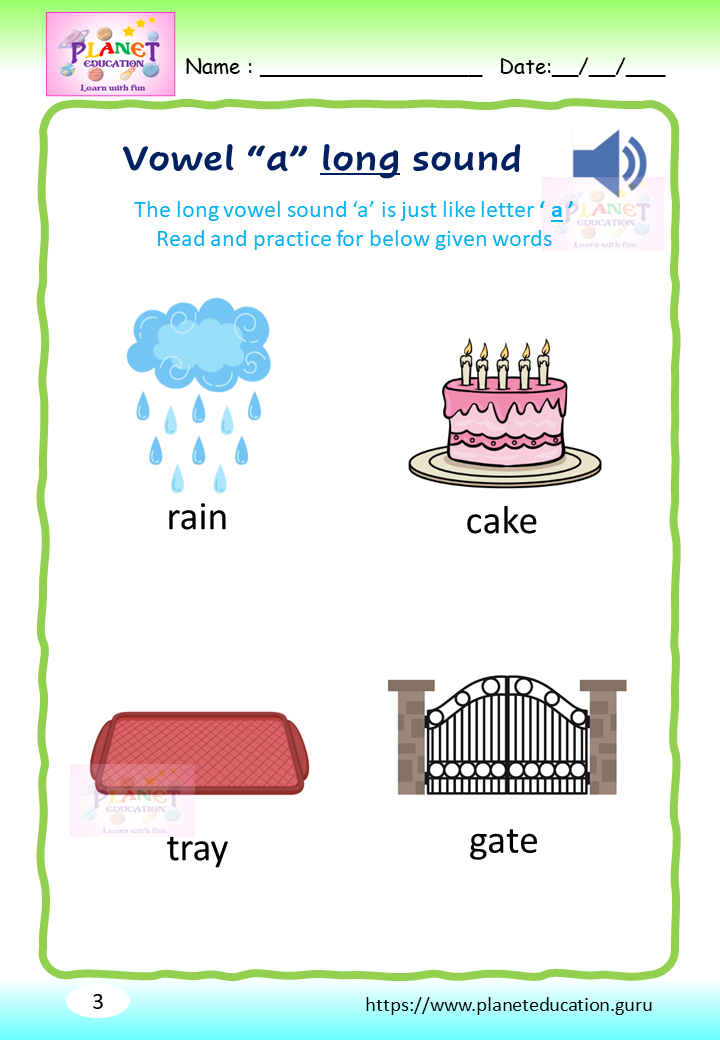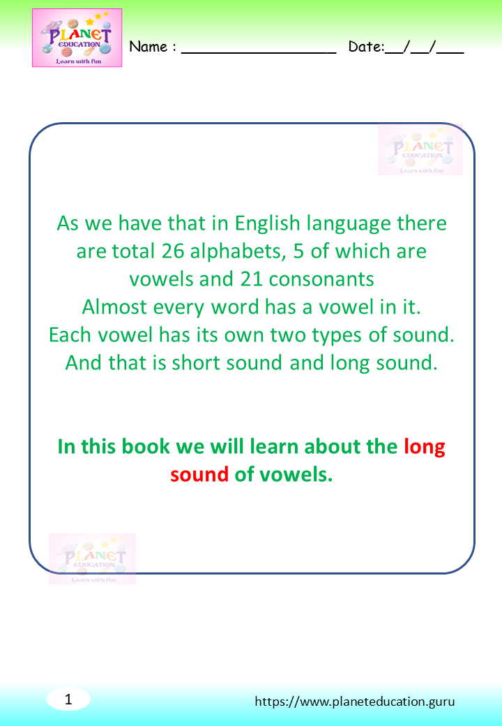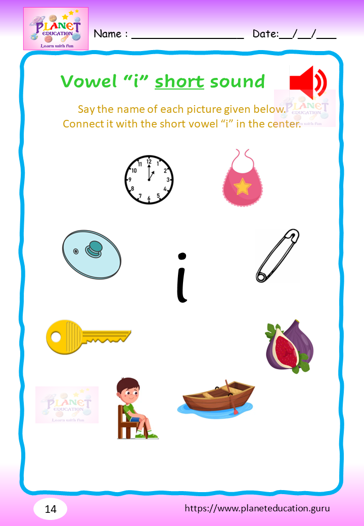 Phonics Worksheet - Learn vowel and its sound - Volume 1