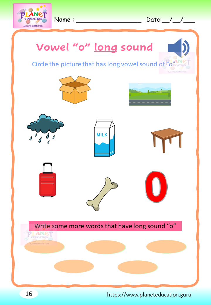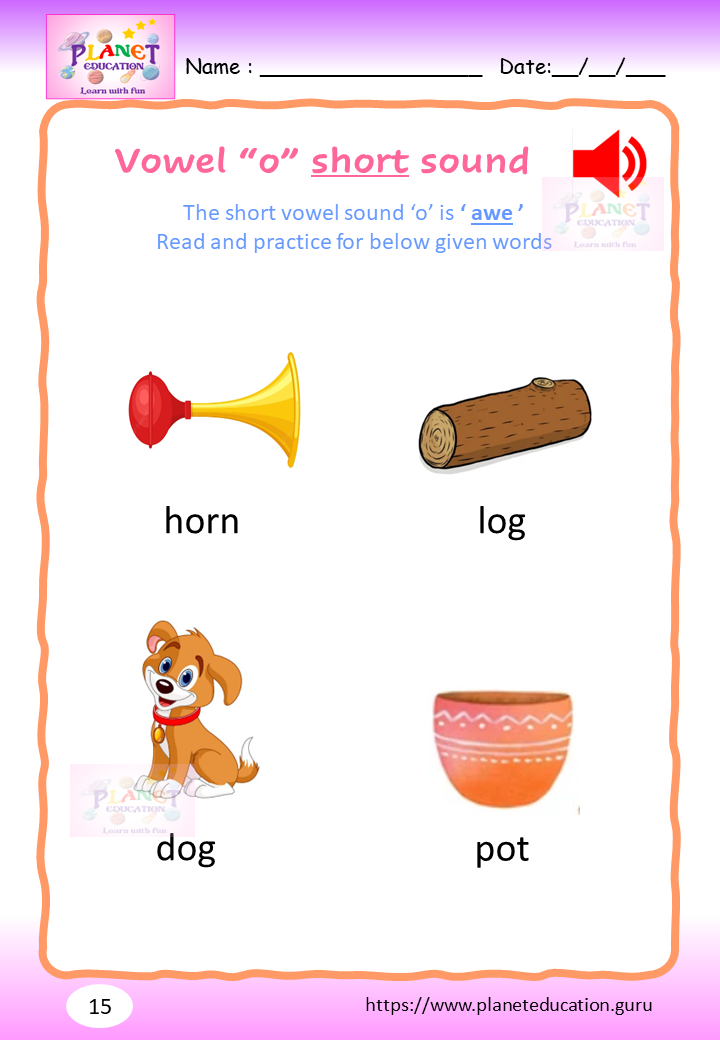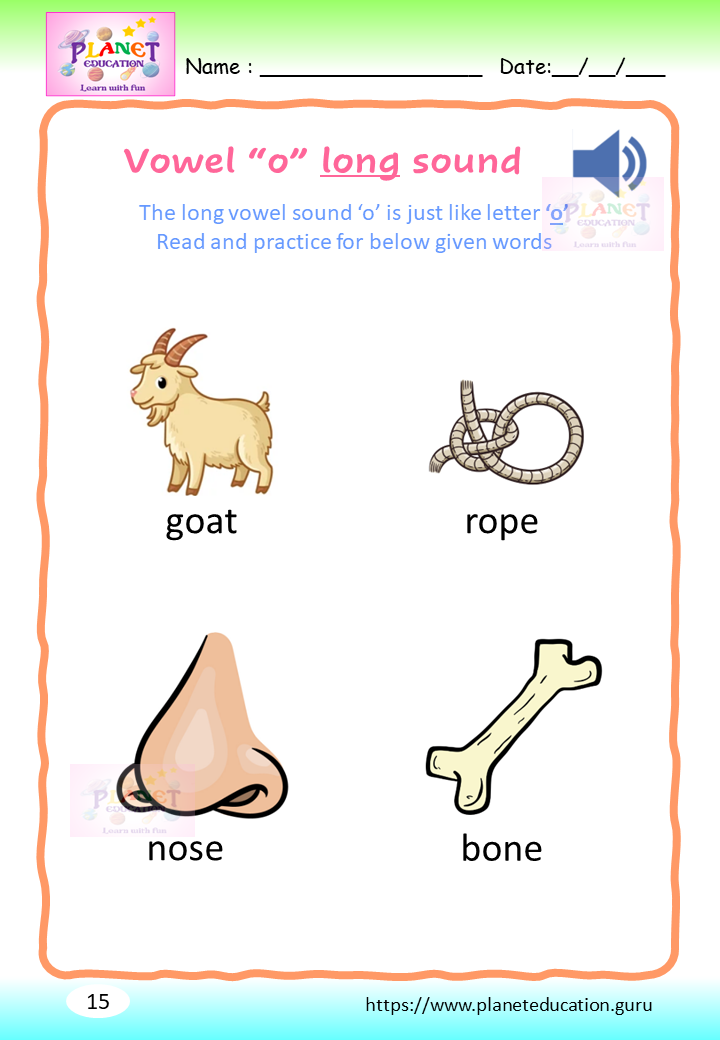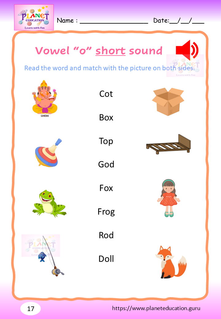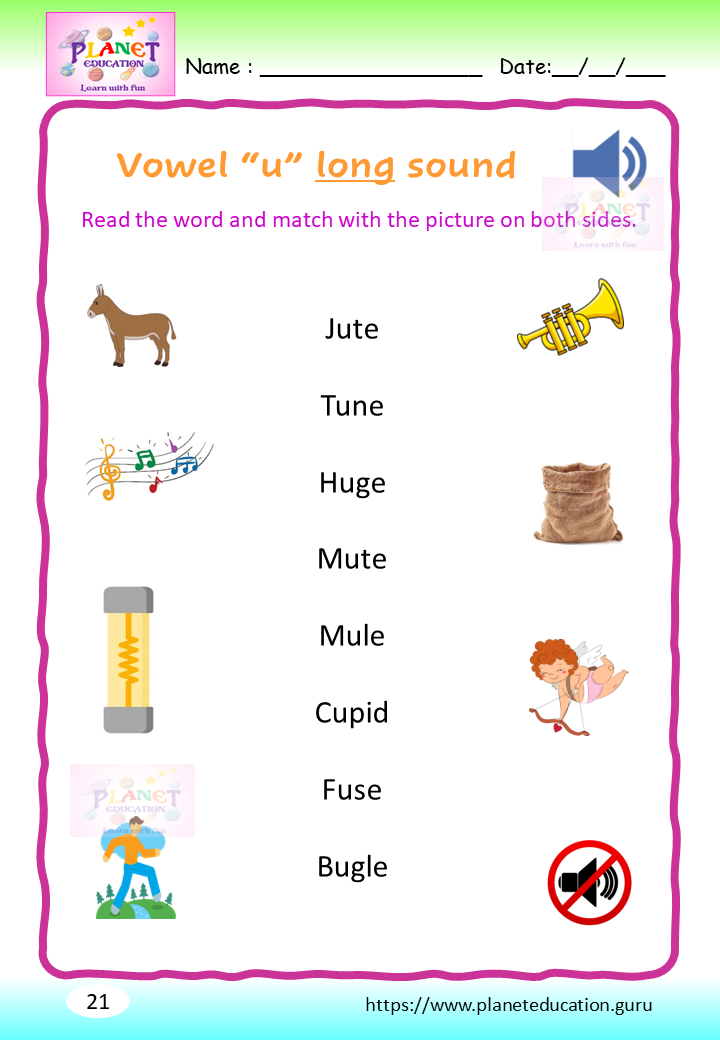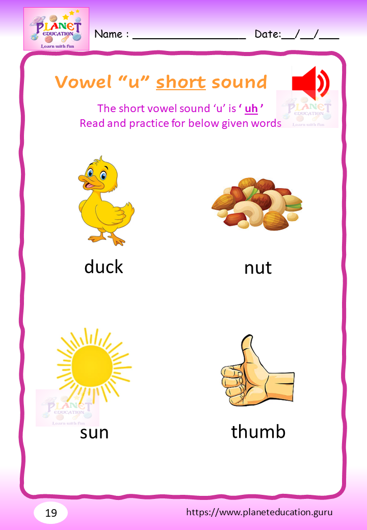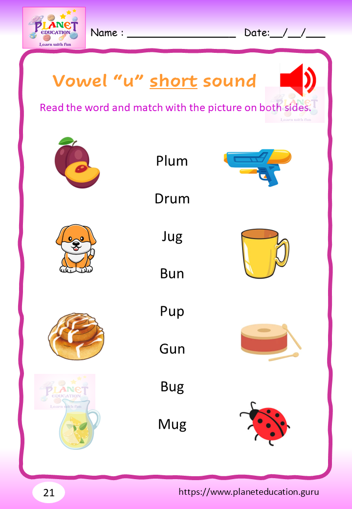 Phonics Worksheet - Learn vowel and its sound - Volume 2