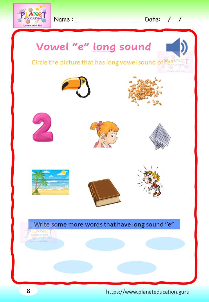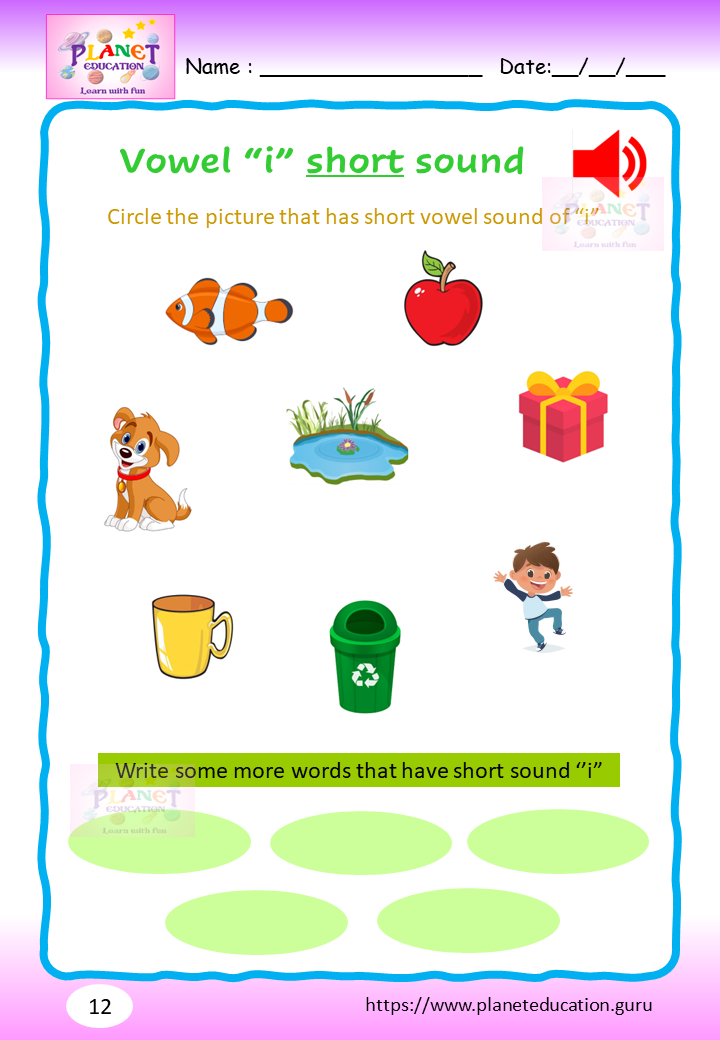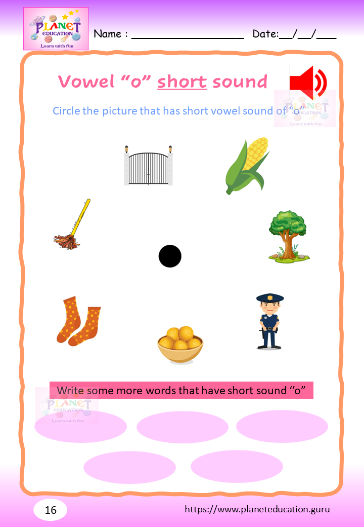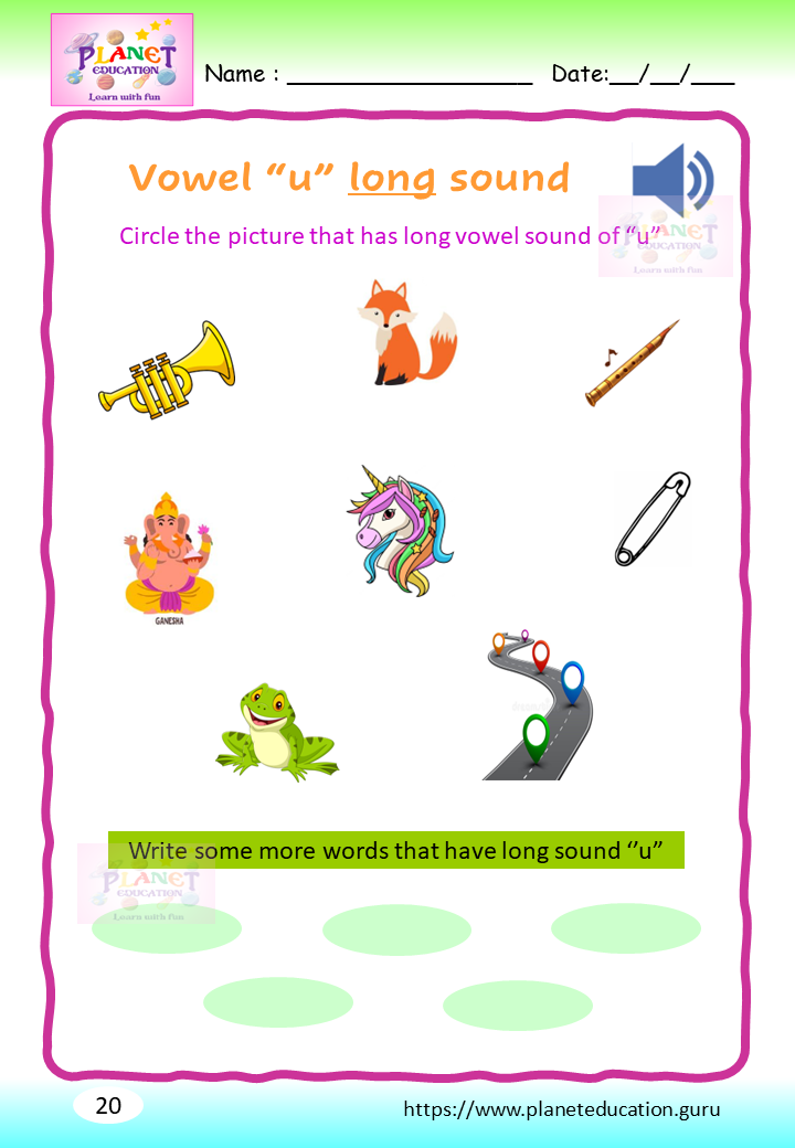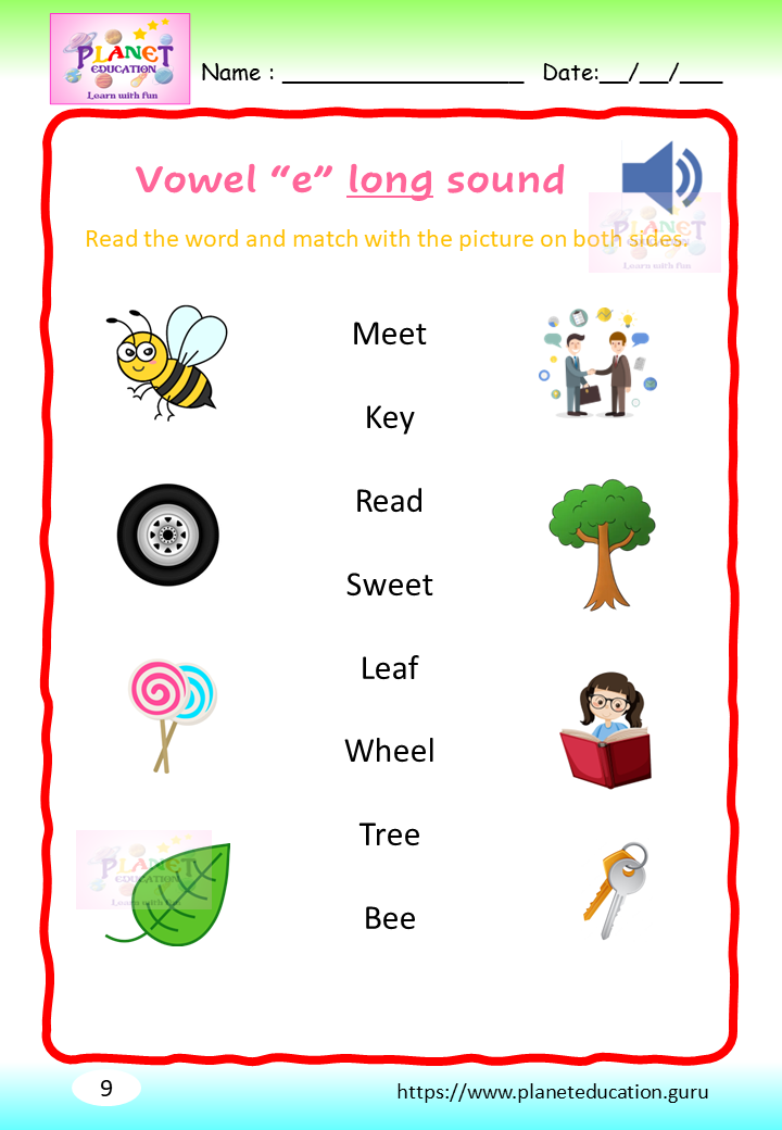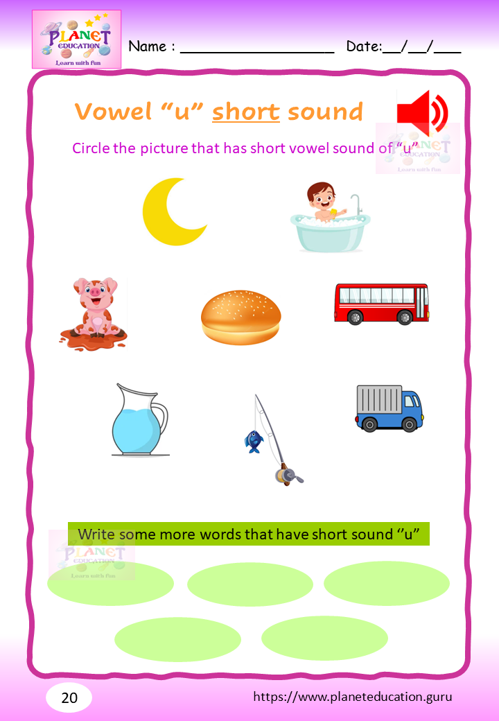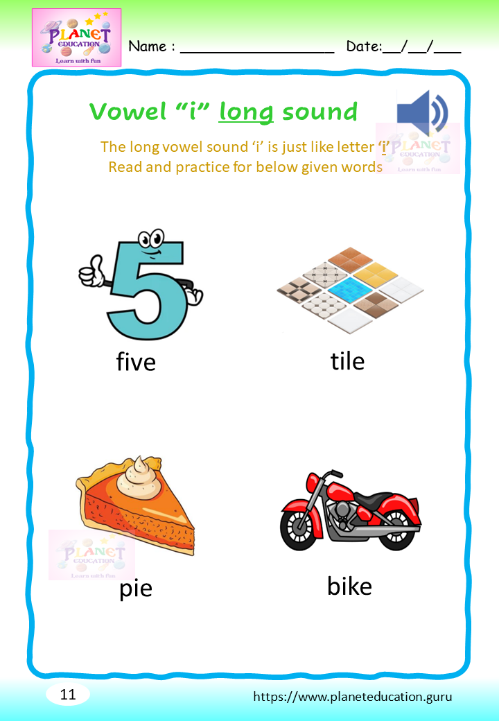Phonics Worksheet - Learn vowel and its sound - Volume 2