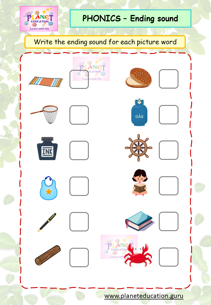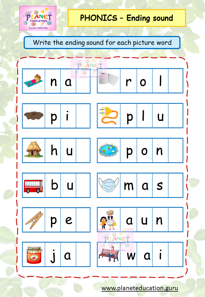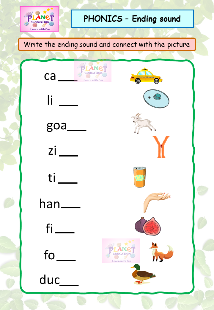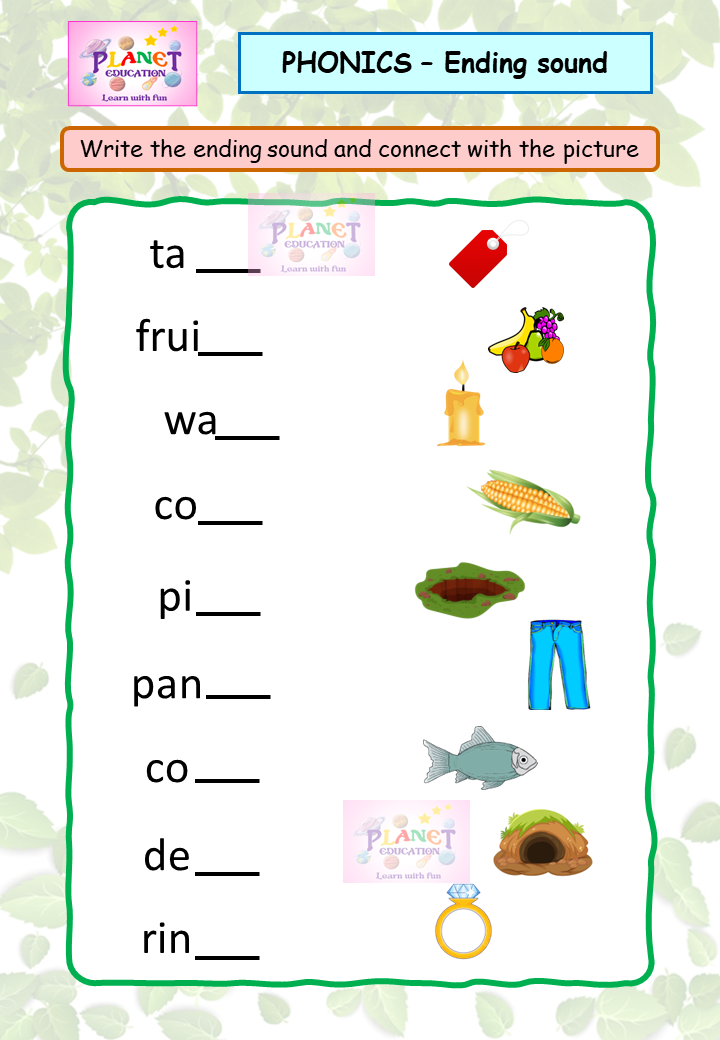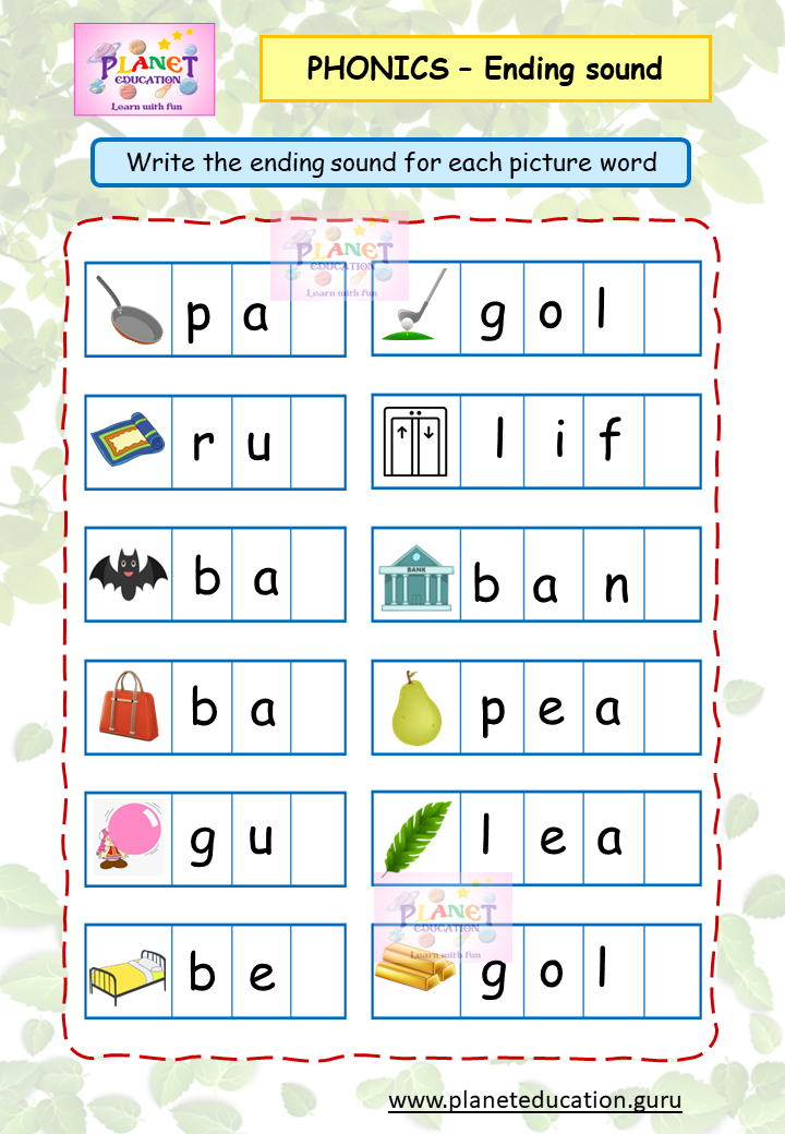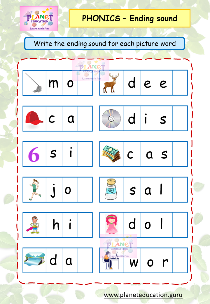 Phonics Worksheet - Ending sound - Volume 1