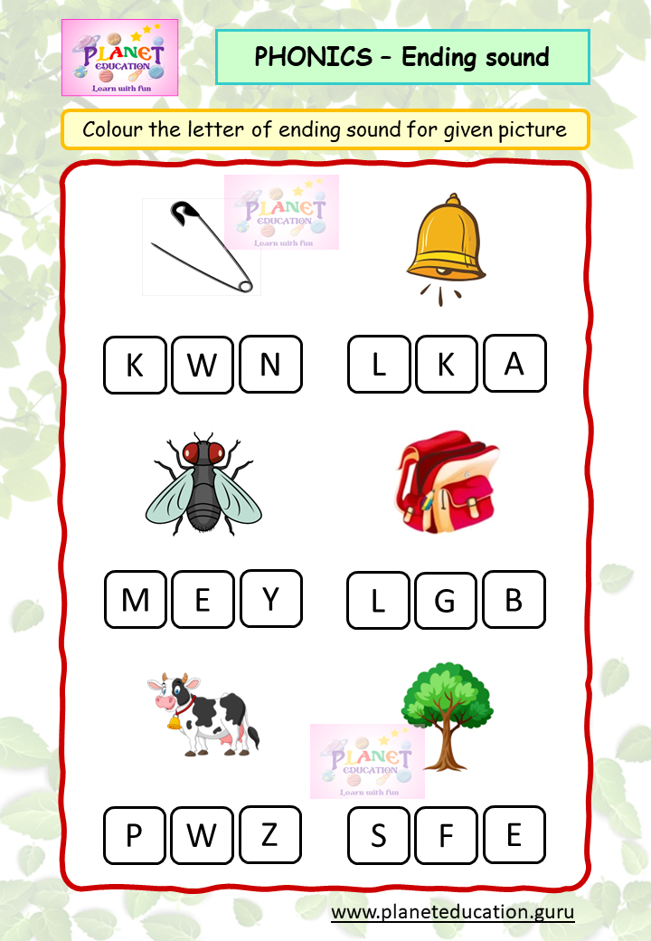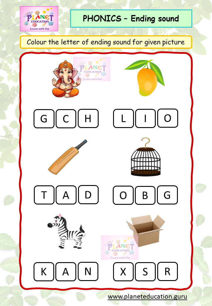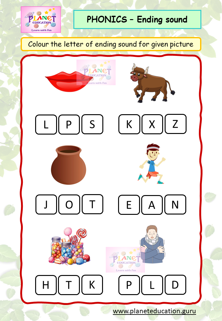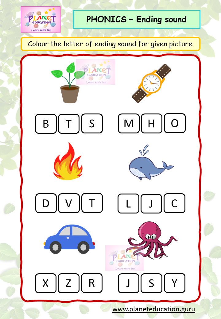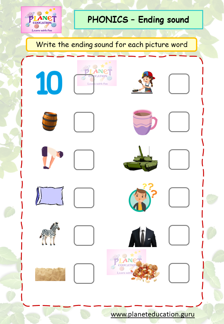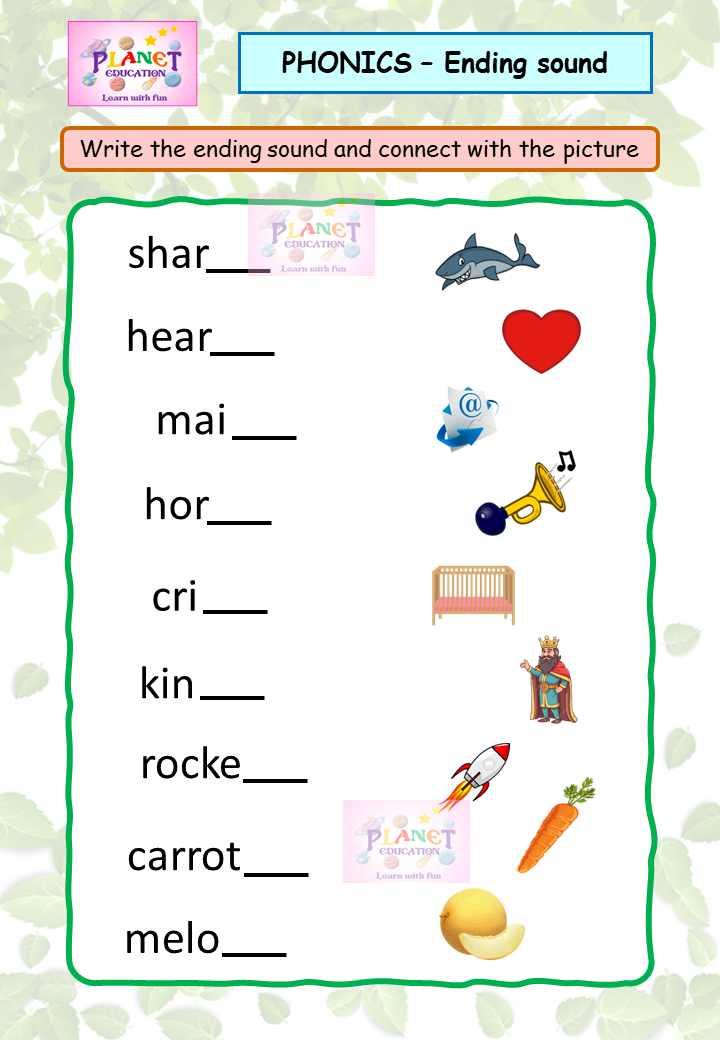 Phonics Worksheet - Ending sound - Volume 1