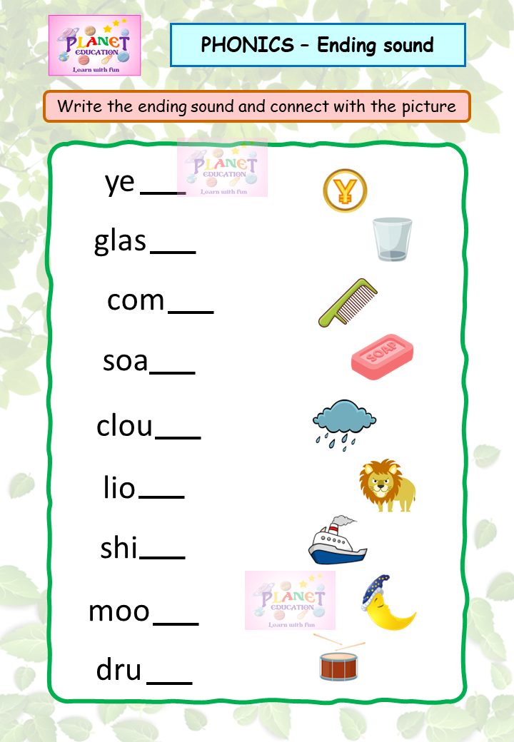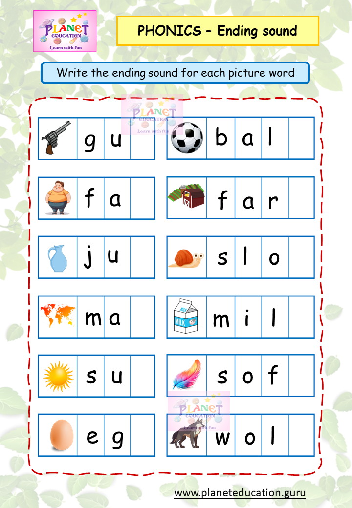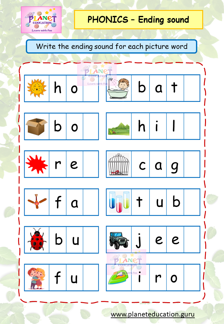 Phonics Worksheet - Ending sound - Volume 2